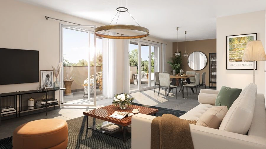 - Volumes généreux : Des pièces de vie spacieuses baignées de lumière grâce à de larges baies vitrées.